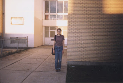 This is me today! I straightened my hair and that's my natural colour, it looks darker in the pictures than it does in the mirrors. I had someone put some make-up on in an attempt to look my age, including some extra eyelashes which are coming off! Just a old white blouse work blouse and grey vest, nothing especially cute as far as clothes go. That's my "fish" birthmark, it looks like a fish to me...a child's drawing of a fish, which works because I was a child when I decided it was a fish.