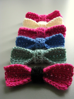 I have been crocheting and doing as many crafts as I possibly can for my very first craft sale! It is to be held on Sunday in between church services at a decent size church. I have so many more things to make, well ideas that I would love to see become real and sold at this craft sale and I still have a day and a half to make it happen! The top two photos are some bows that I have made into pins to be worn in a myriad of ways and the bottom two photos are two baby girl hats that I still might add some embellishments to.