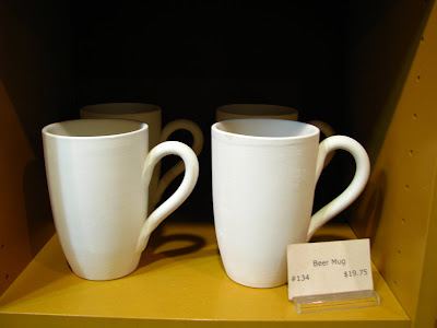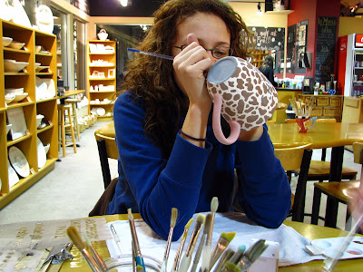 First up Esther's mug. She has a bit more painting to go before it's glazed and fired. She kept asking everyone what colors to use where and relied a bit too much on the man who didn't care about colour variation for support.