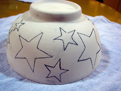 This is my piece. I strayed from my spectular tributes to the seasons on mugs to bring you... a cereal bowl with stars! um you're jealous I know, but someday if you work hard you can have a cereal bowl with stars too.